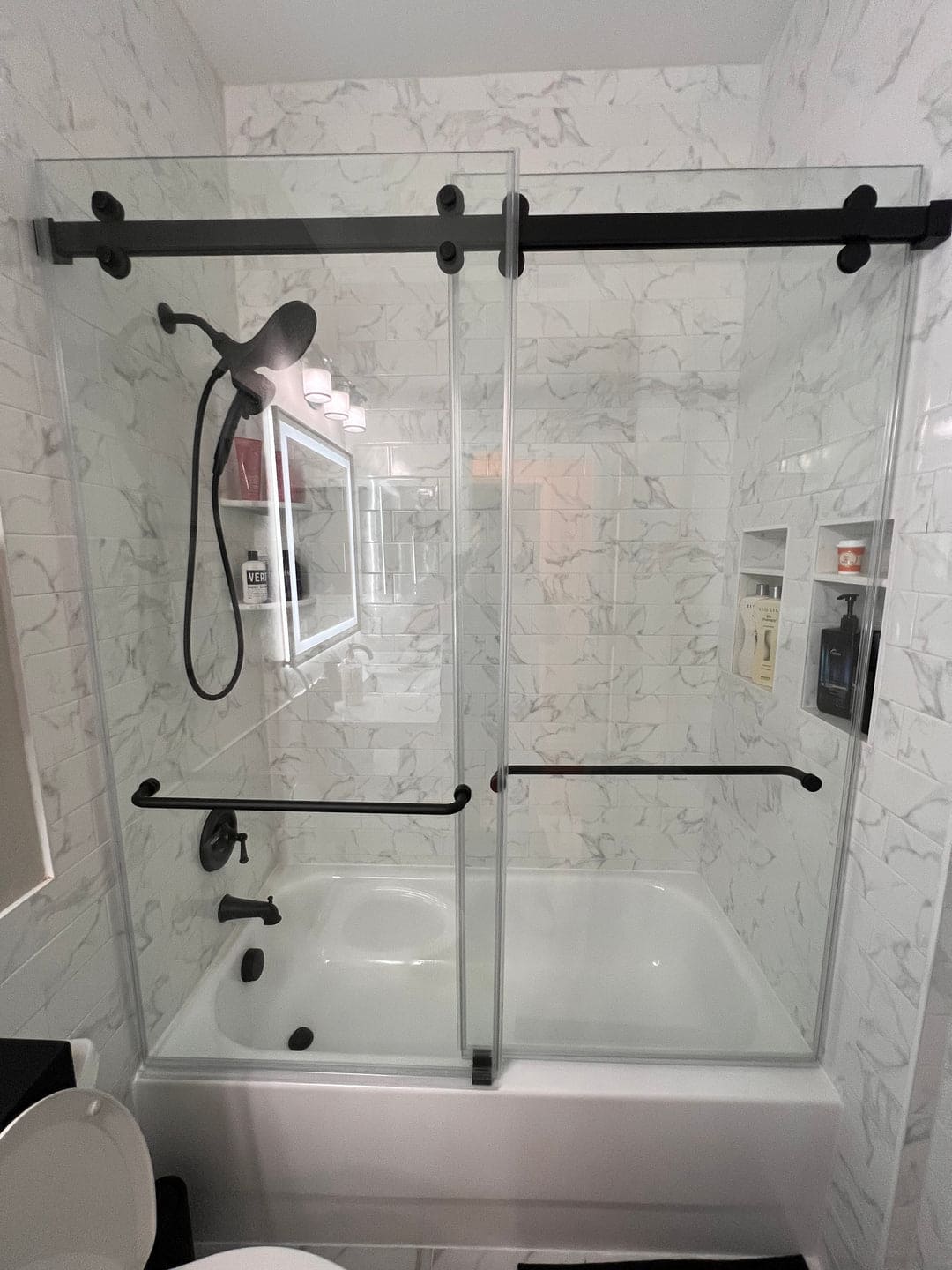 Cambridge Frameless Sliding Shower Door – Double Sliding System for Bathtub