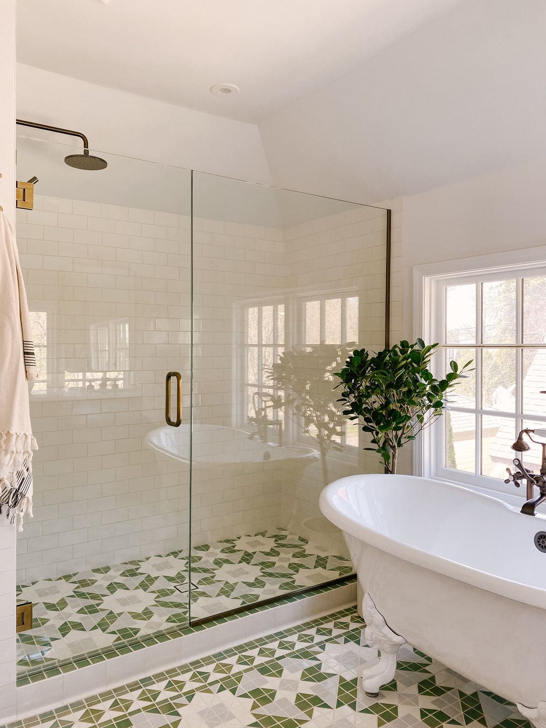 Premium frameless shower enclosure with a door and fixed panel, made of 3/8-inch tempered glass.